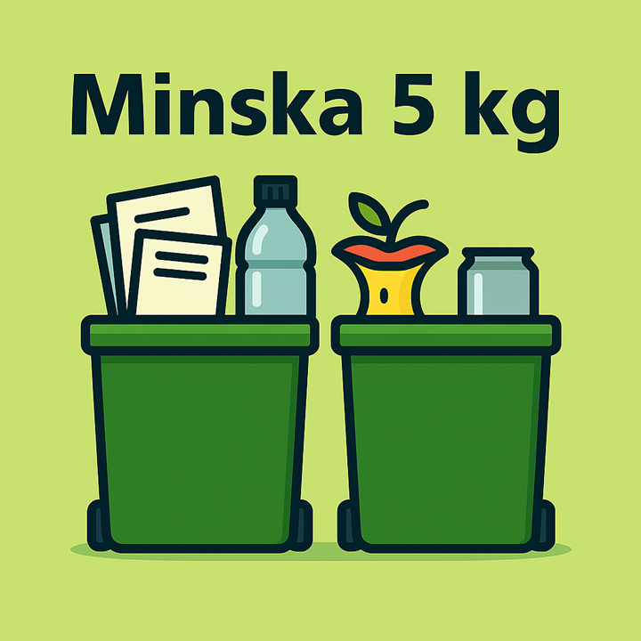 Minska 5 kg restavfall per person under 2026 och det blir avdrag årets sista kvartalsfaktura. Ett konkret mål och en konkret vinst! En liten insats gör stor skillnad.