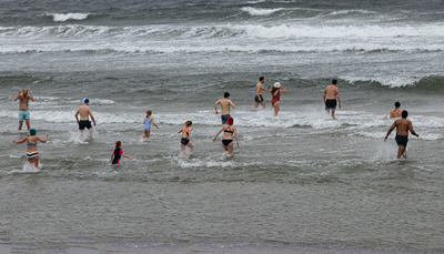 Nyårsdagsdoppet vid Kämpingestranden nedanför restaurang Strandtugg